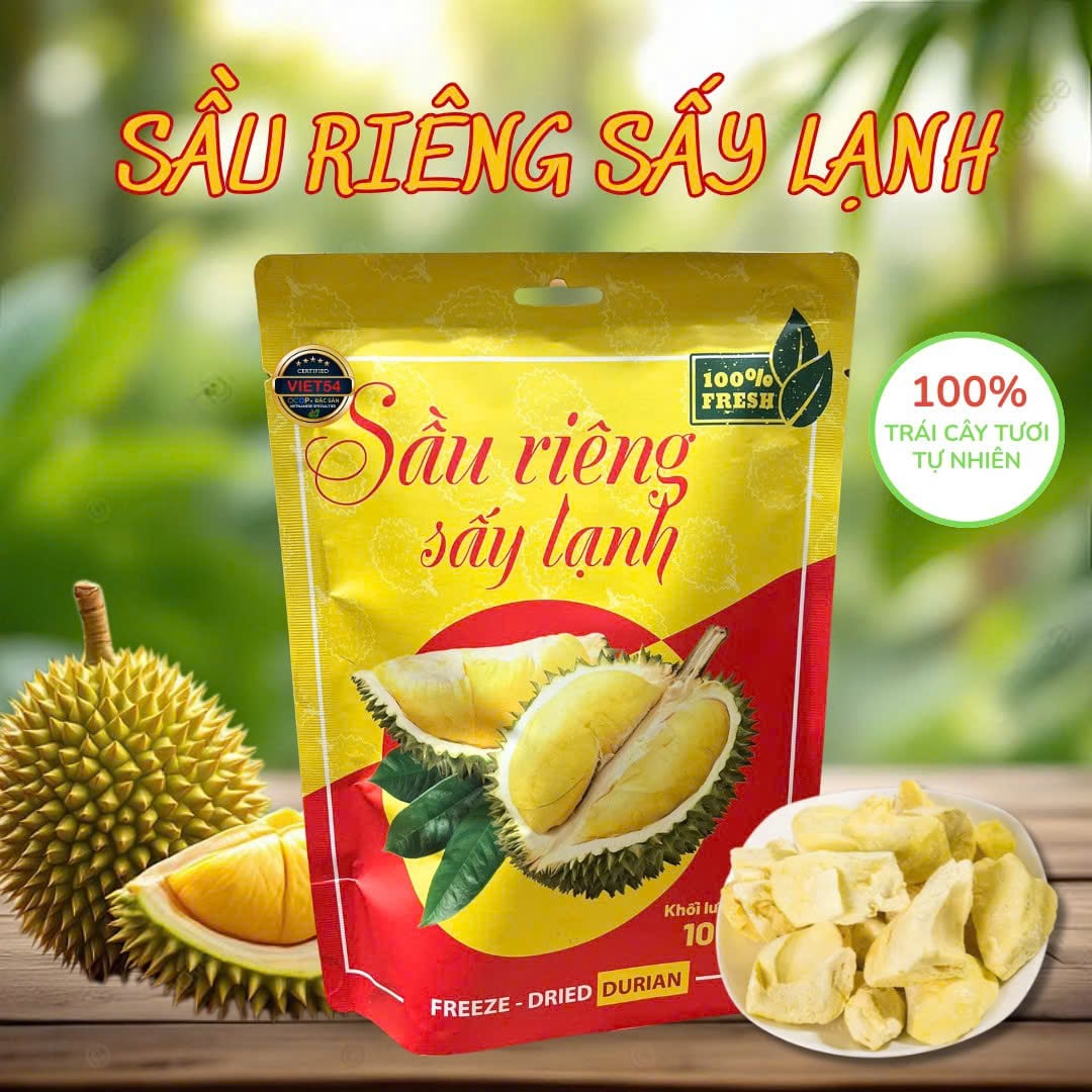 Sầu Riêng Sấy được chế biến từ những múi sầu riêng tươi ngon, tuyển chọn kỹ lưỡng, sau đó sấy giòn bằng công nghệ hiện đại. Nhờ vậy, sản phẩm giữ nguyên hương vị đặc trưng béo ngậy, thơm lừng của sầu riêng, mang đến trải nghiệm giòn tan hấp dẫn trong từng miếng.