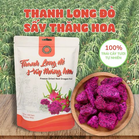 Thanh long sấy thăng hoa được chế biến từ những trái thanh long tươi ngon, chín mọng tại vườn. Ứng dụng công nghệ sấy thăng hoa hiện đại, sản phẩm giữ nguyên màu sắc, hương vị và dưỡng chất vốn có của trái cây tươi.